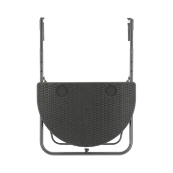 De halfronde balkontafel is ruimtebesparend. U kunt de tafel ophangen aan de balustrade van uw balkon, waardoor er geen tafelpoten op de grond in de weg staan. Het strakke tafelblad is groot genoeg om aan te eten. Daarnaast kunt u twee drankjes in de bekerhouders kwijt, waardoor deze niet schuiven. Bent u uitgegeten? Dan klapt de tafel gemakkelijk weer op door het haakje onder het blad los te maken. Het frame is afgewerkt met een hoogwaardige lak wat het weersbestendig maakt. De balkontafel heeft een gevlochten kunststof tafelblad is. De balkontafel is op te hangen met de haken aan de bovenzijde, met de wieltjes op de haken kunt u de tafel stevig aandraaien.