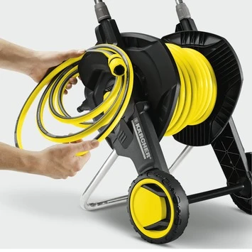 Op een simpele manier je planten water geven, doe je met deze Kärcher slangwagen HT 4.520 Kit 1/2” 20 m. Deze slangwagen is geschikt voor het eenvoudig bewateren van middelgrote tot grote tuinen. Dankzij de flexibele Kärcher PrimoFlex®-slang van 20 meter loop je met gemak je hele tuin door. De duwbeugel kun je in hoogte verstellen, zodat je altijd rechtop loopt. Bovendien zorgen de houder en de haak op de duwbeugel ervoor dat je al je toebehoren, zoals de sproeilans en spuitpistool, netjes vast kunt klikken. Doordat de slangaansluiting aan de zijkant van de slangwagen zit, voorkom je het mogelijk knikken van de slang of vervelende valpartijen. Wanneer je klaar ben met sproeien, vouw je de wagen in een handomdraai in elkaar om deze vervolgens compact op te bergen. Kortom: voor een soepele sproeibeurt kies je deze slangwagen.
