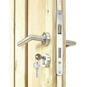 Heb je een houtbetonschutting van grenen waar je een passende poort bij zoekt? Dan zit je met deze poort voor poort voor houtbetonschutting Grenen, breedte 110 cm linksdraaiend helemaal goed. Met een breedte van 110cm, waarvan de doorloopmaat ca. 100cm breed is, kun je door deze doorgang prima met een fiets, scooter of kruiwagen lopen. De poort is gemaakt van grenenhout, een over het algemeen zachte houtsoort, maar harder dan vurenhout, en minder snel vervormt wanneer het in aanraking met vocht komt. De poort heeft een metalen frame en wordt geleverd met een aluminium cilinderslot, metalen frame, hengen en verstelbare duimen, zodat je de deur eenvoudig zelf vast kunt zetten. De poort is linksdraaiend en heeft de scharnieren links zitten, wat inhoudt dat de poort vanuit de tuin gezien naar binnen toe opent.